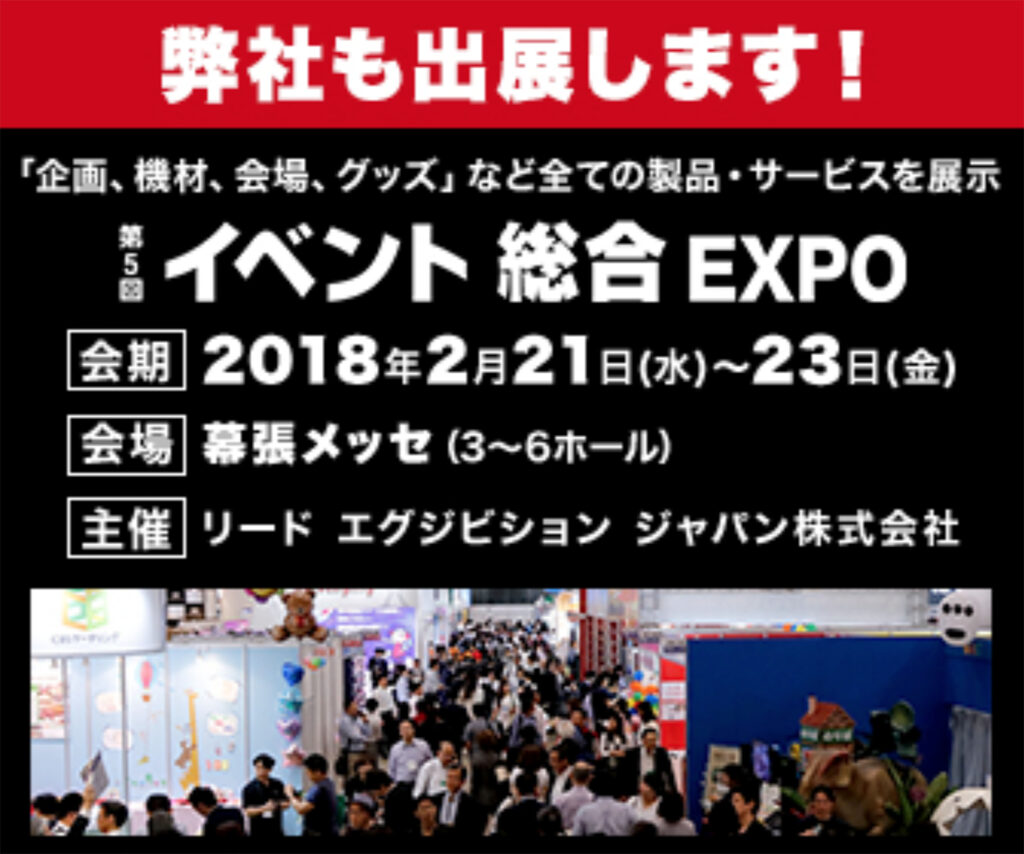 2018.02.21〜23に行われる『第5回イベント総合EXPO』への出展のお知らせです。