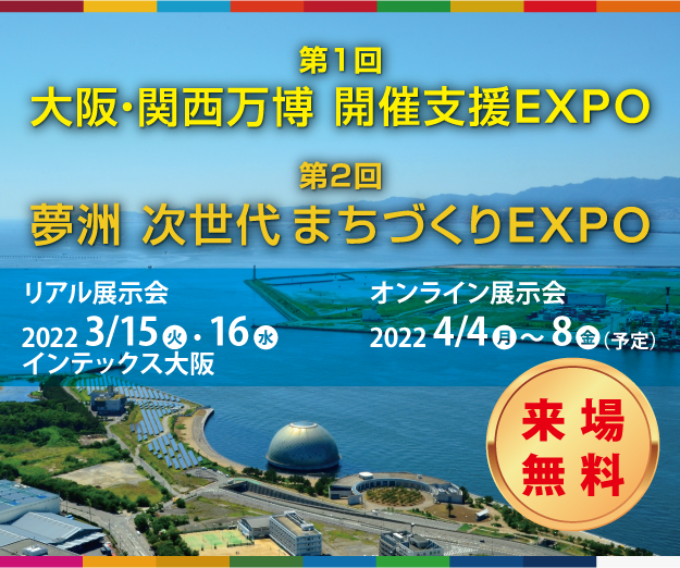 2022年3月15日~16日の期間、インデックス大阪にて開催されます、「第1回 大阪・関西万博 開催支援EXPO」に出展致します。皆様のご来場を心よりお待ちしております。