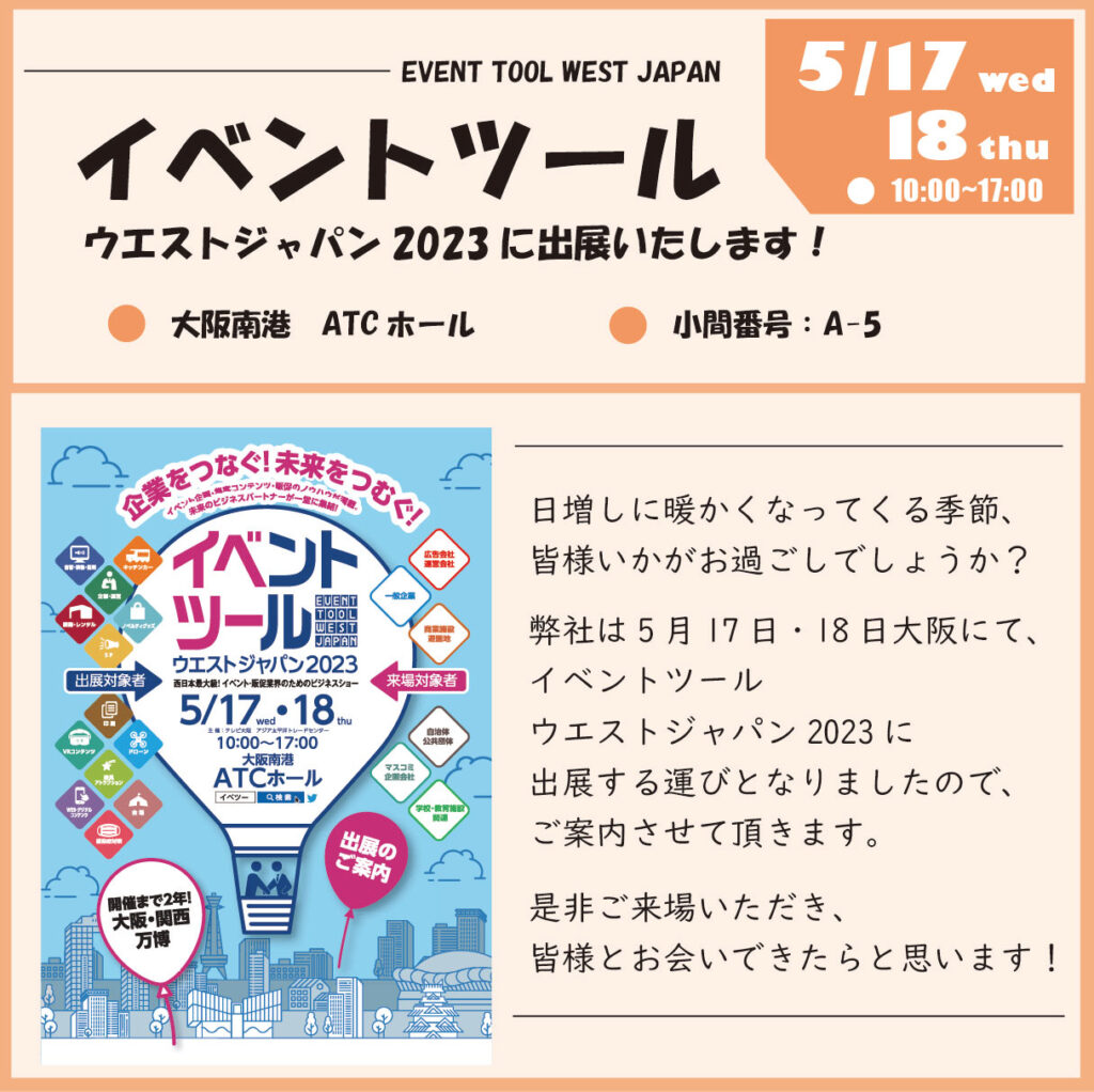 イベントツールウエストジャパン2023に出展いたします!